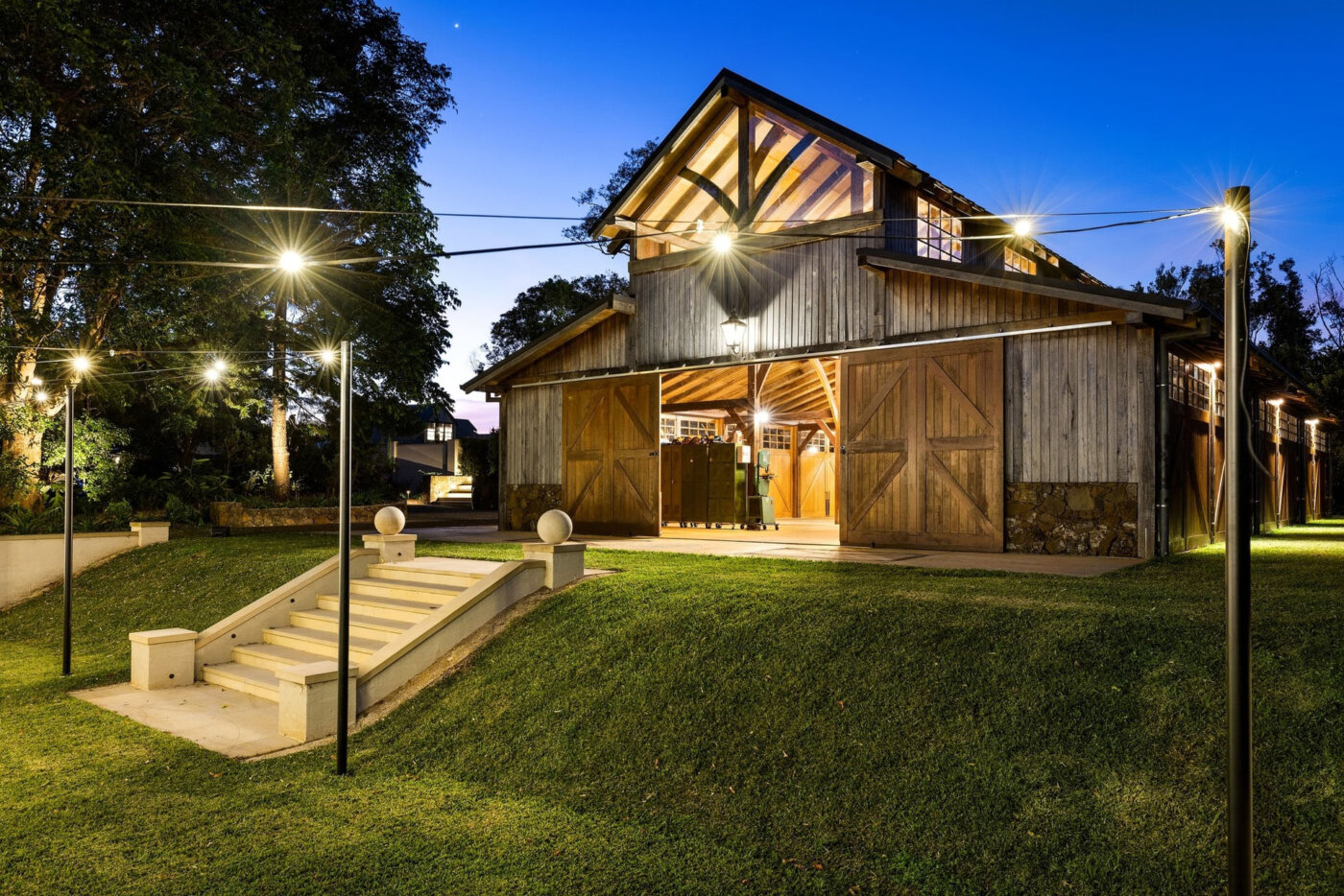 Designed to include some stables for the family horses, workshop space, machinery storage and the option of hosting events, this barn really does have it all. Landscaping has been completed on site to take full advantage of the views to the east and Lennox Head water views. This project included 24 cubic metres of locally sourced sustainable hardwood that was handcrafted into a structure that will be admired for hundreds of years.