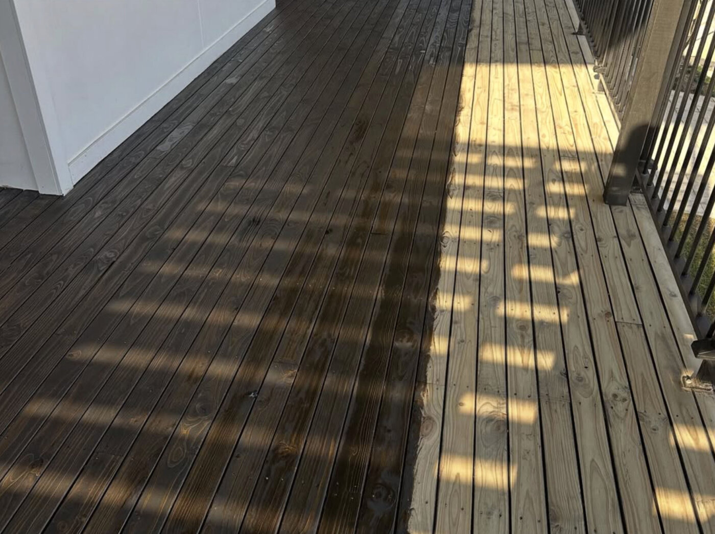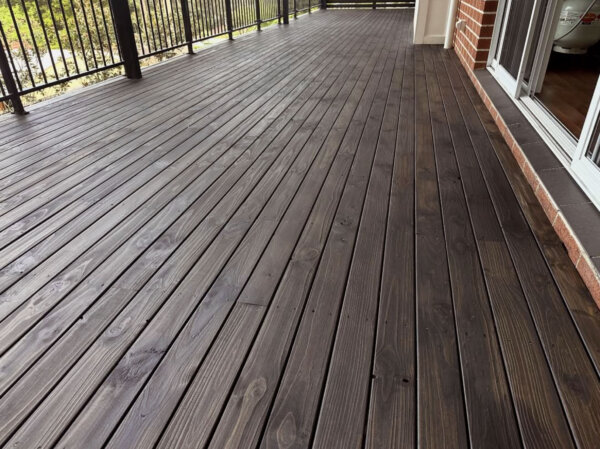 Turning pine into so much more. Equisol Pro E365 penetrating oil with dark brown tint creates a whole new look for a humble pine deck.